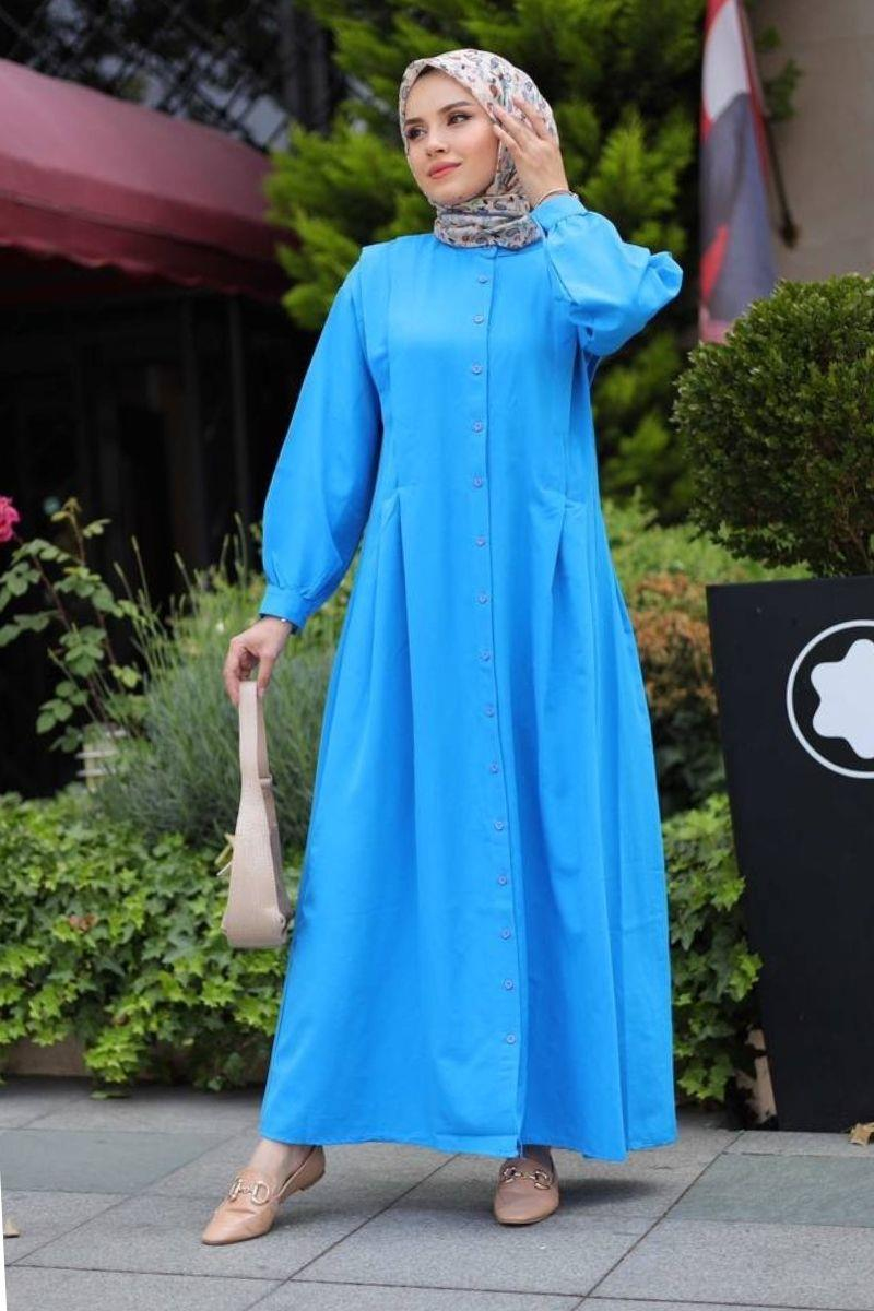 Bukle Poplin Kumaş Uzun Elbise Mavi (ML01448-5334)