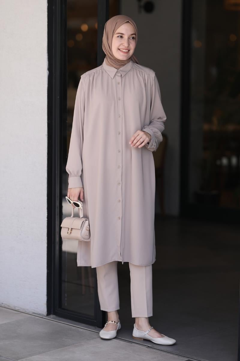 Özellikler • Tesettür Uyumlu: Bol ve uzun kesim, kapalı giyim kurallarına uygun • Konfor: Hafifliği sayesinde serin tutar; yaz akşamlarında veya ılık bahar/sonbahar günlerinde ideal. • Şıklık: Düğme kapamalı yalın ön tasarım, minimal ve sofistike bir görünüm sunar. • Bakımı: Muhtemelen düşük sıcaklıkta hassas yıkama – ütü ile hafif düzeltme önerilir.