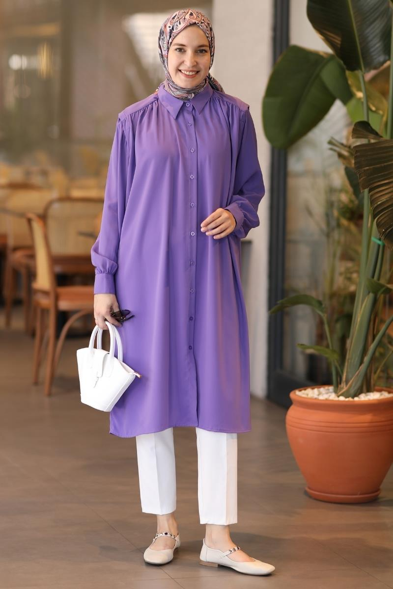 Royâl Uzun Tunik Mor
