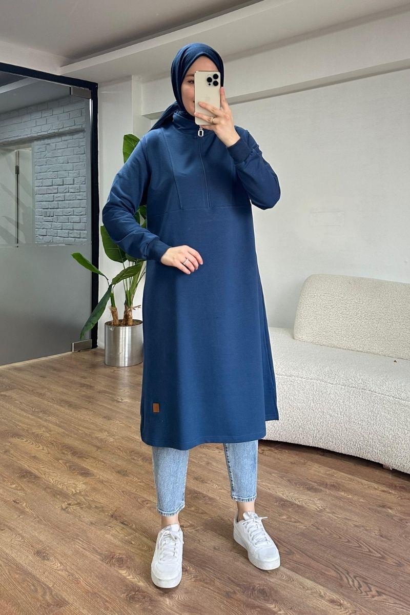 Yarım Fermuarlı Sweat İndigo (ML01866-6783)